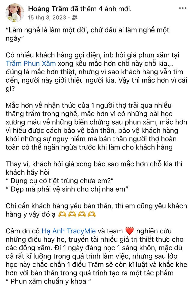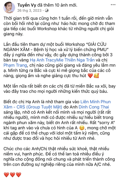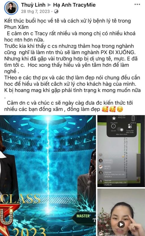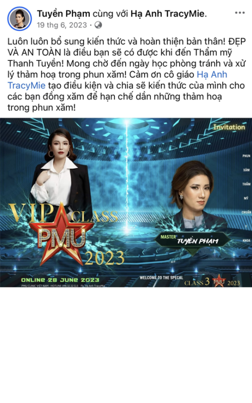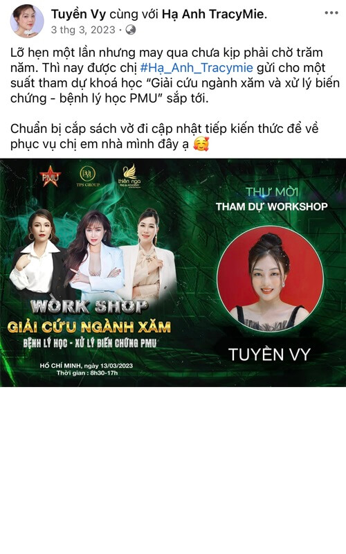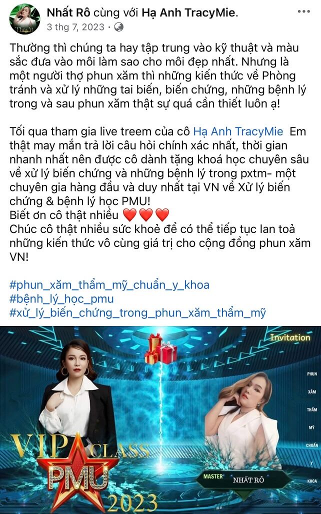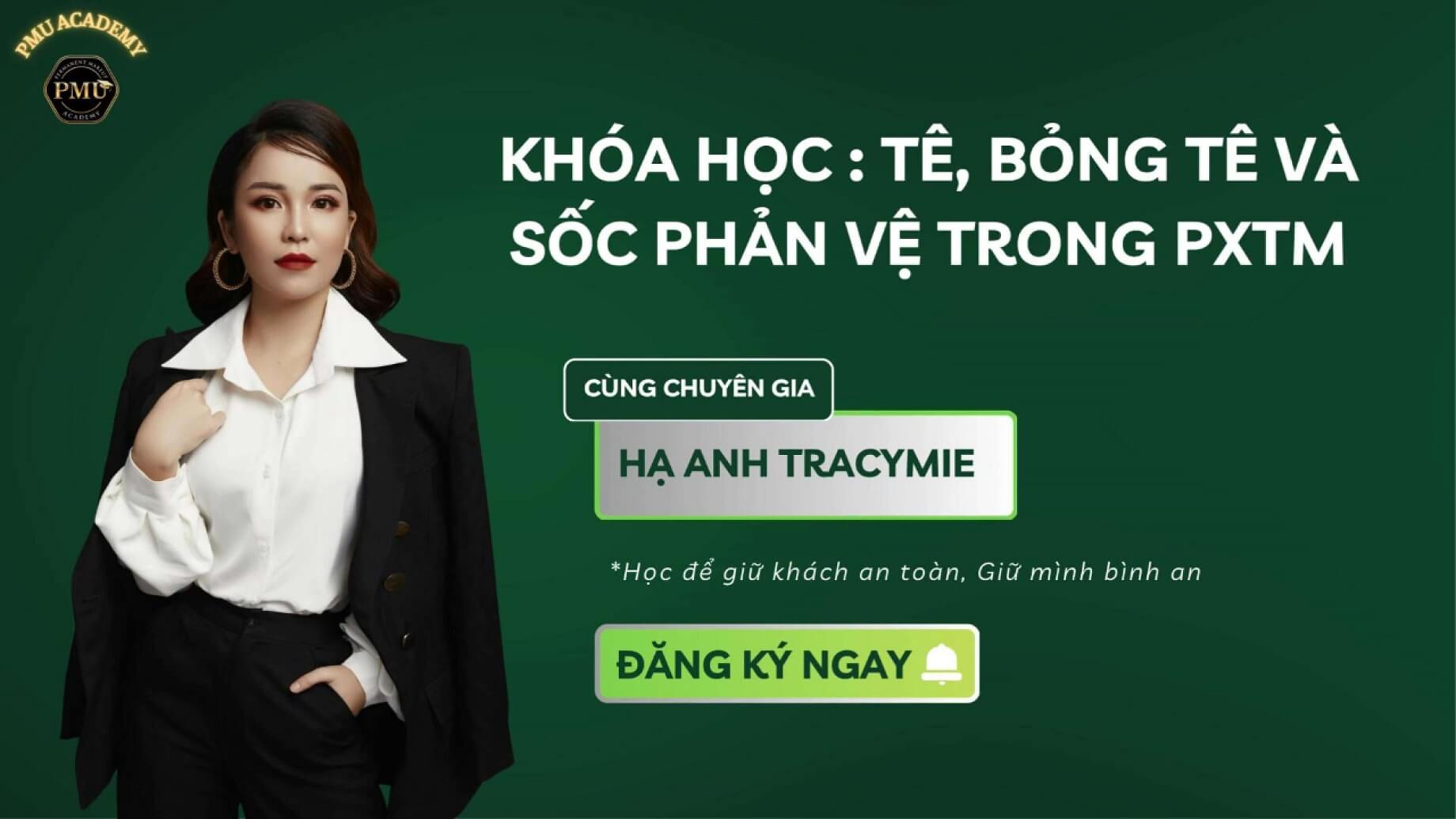 Dưới sự dẫn dắt của Hạ Anh TracyMie – Giảng viên & Chuyên gia đầu ngành trong lĩnh vực Xử lý Biến chứng Phun Xăm, học viện cam kết mang đến lộ trình đào tạo thực chiến, giúp Đồng Xăm không chỉ phục hồi hiệu quả các ca lỗi mà còn nắm vững hệ thống kiến thức Phun Xăm chuẩn Y khoa – khoa học – thực tiễn, bảo vệ cả người làm nghề lẫn khách hàng.